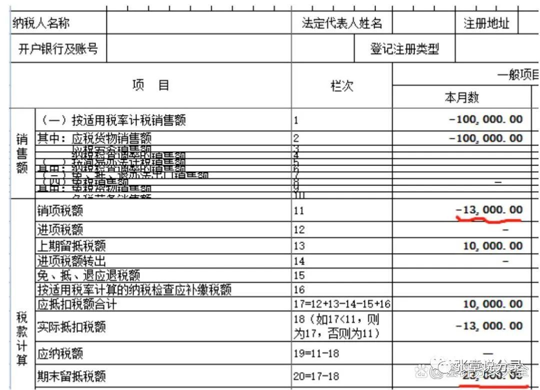 主表会自动生成,当销项税是负数时,是可以进行退税操作的,但是企业为了方便处理,一般我们都是增加期末留抵税额,留做后期抵扣。所以从表中你看到,期末留抵税额在上期留抵税额10000的基础上增加了这张红字发票的税款,变成了23000。