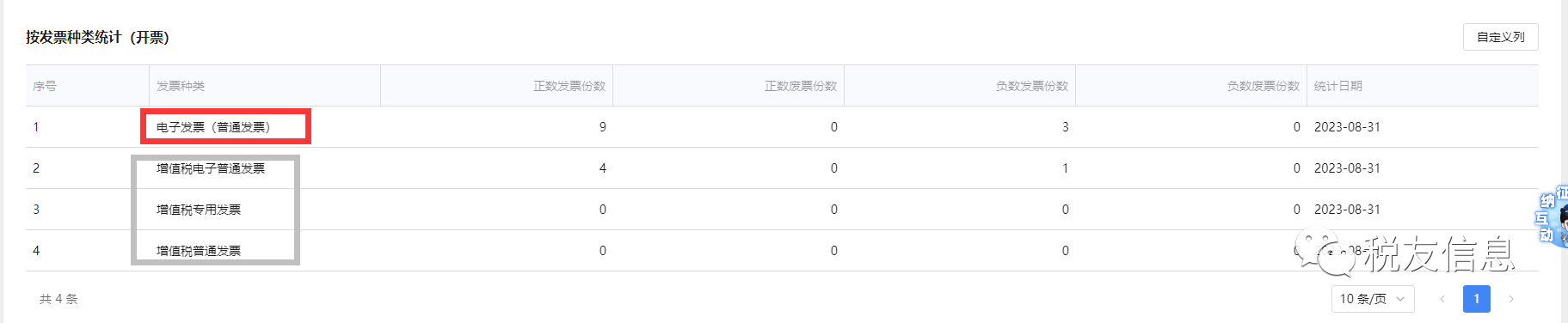 显示的电子发票(普通发票)就是电子税务局开的数电票的数据,增值税电子普通发票、增值税专用发票、增值税普通发票则是用盘开的发票,因为8月还用盘开了票,再去注销的,9月份就不会有这些数据了。